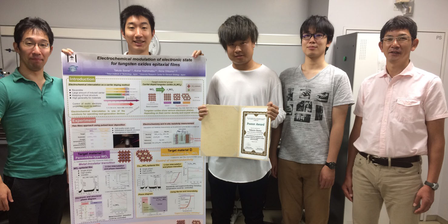 Dr. Yoshimatsu’s presentation “Superconductivity of ɤ -Ti3O5 films” and Tetsuya Kudoh’s “Electric properties of ZnO graphoepitaxial films” have been selected by JPAP to receive the 39th Outstanding Achievement Presentation Award.