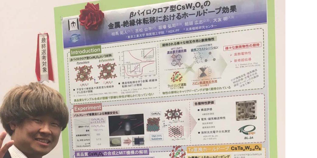 Congratulations to Takuto Soma for winning a poster award at the 65th JSAP Spring Meeting!  He presented ” Impact of hole-doping on metal-insulator transition in β-pyrochlore-type CsW2O6” .